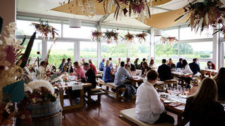 Since 2018 we’ve been inviting some of the UK’s top chefs to Gusbourne to share their Michelin-starred talents in our intimate garden room, overlooking the vineyards where our wines are made. Over the years we’ve collaborated with Adam Byatt’s Trinity, Brad Carter’s Carters of Mosely, Josh Eggleston’s Pony and Trap and Tom Kerridge’s Hand and Flowers.